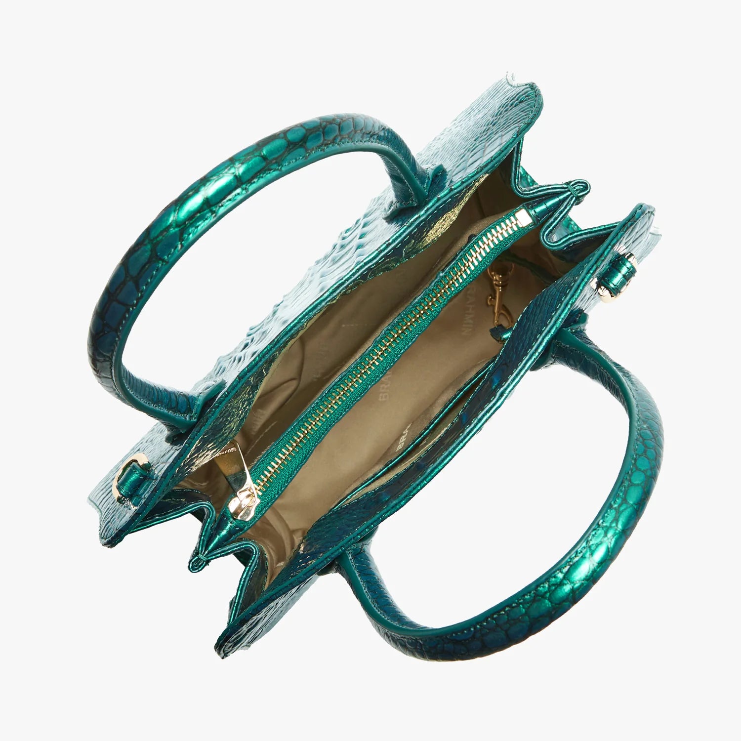Featured in Mystic Green Melbourne, a deep, rich green. Head into the mystic with this luxurious jewel-toned green. This radiant hue has blue undertones that work to bring out the best in this deep green for an ultra-chic collection inspired by precious gems. Made with genuine leather.