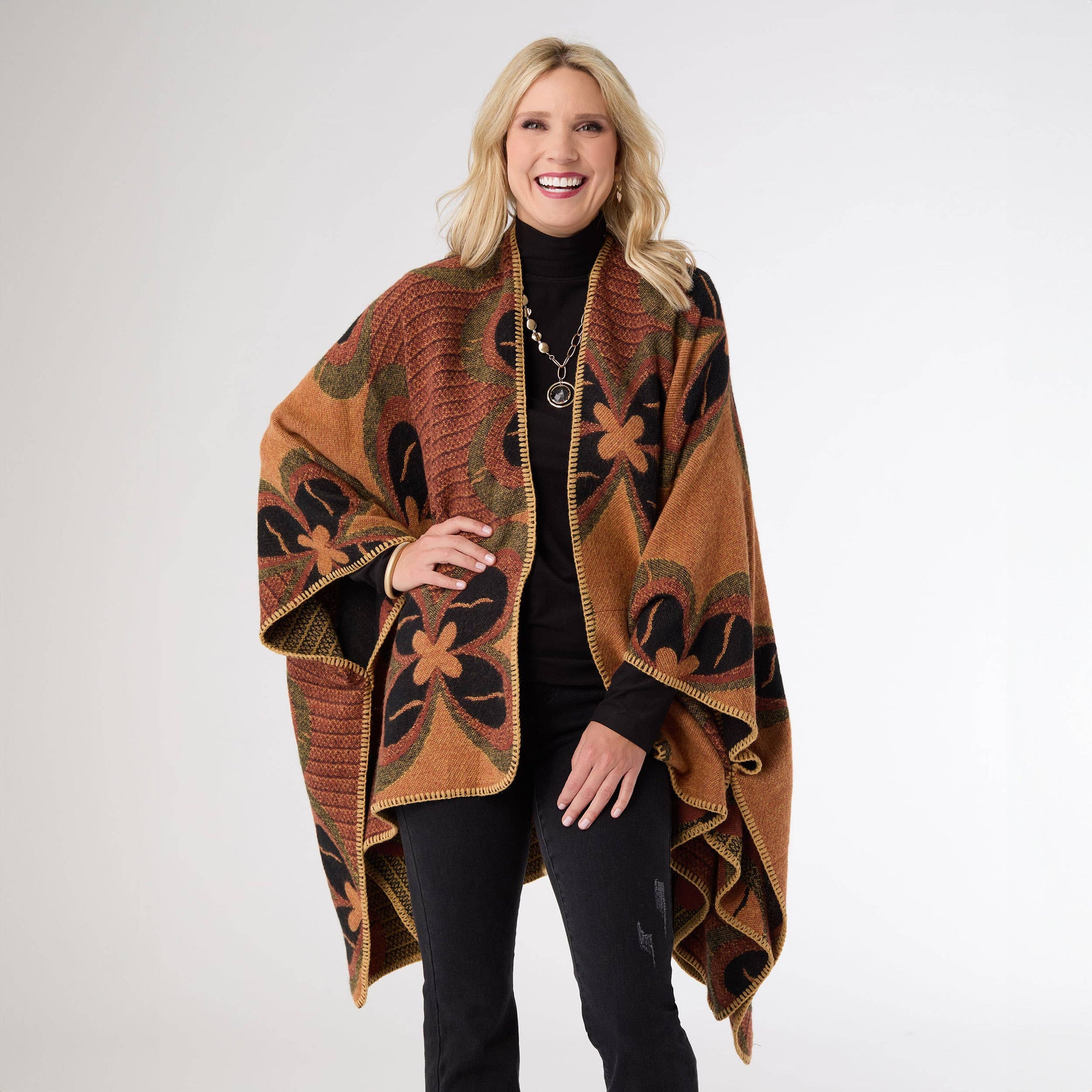 Canna Reversible Whipstitch Wrap - Fall: Nutmeg/Black